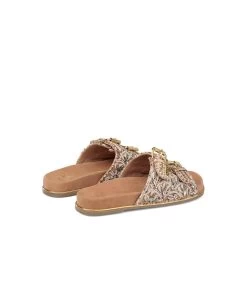 Sandalia plana con pedrerÃa y hebillas. Plantilla acolchada para un mayor confort. La altura del tacón es de 3cm.