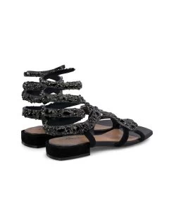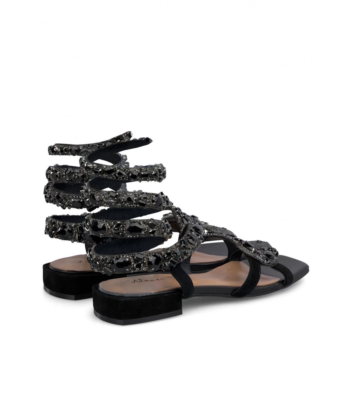 Sandalia plana de piel con tiras cubiertas de pedrerÃa. Plantilla acolchada de piel. La altura del tacón es de 1cm.