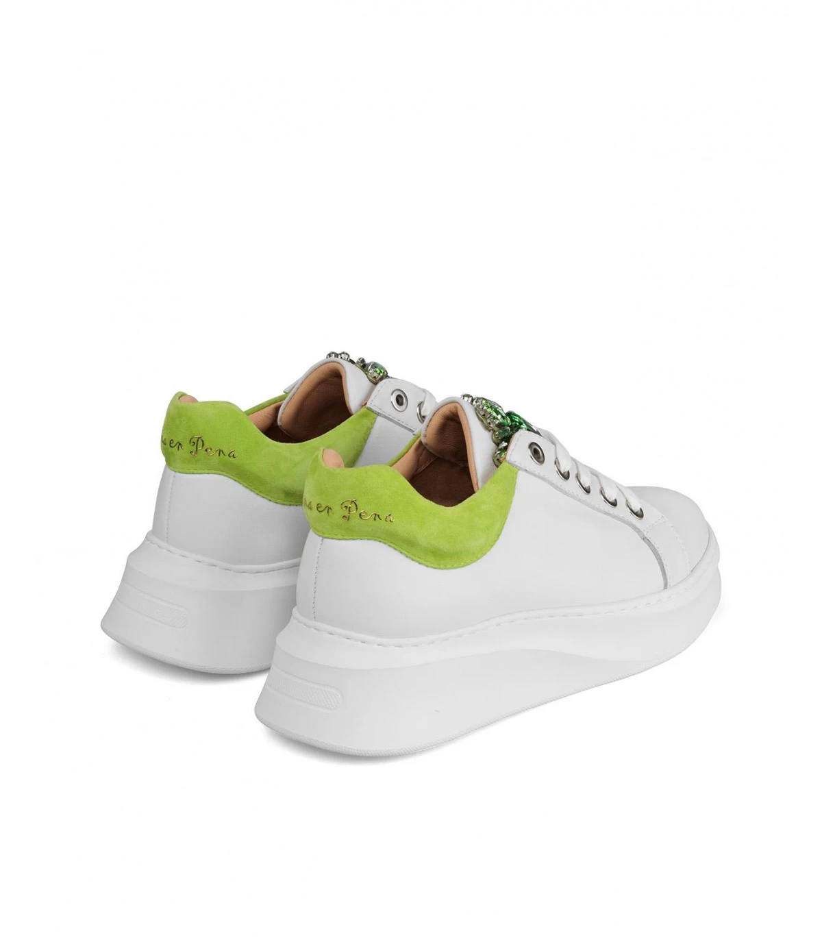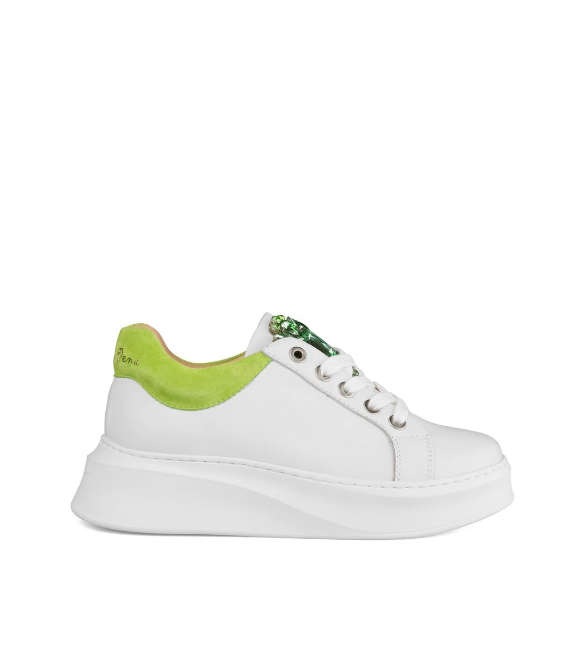 Sneaker mujer realizada en piel. Detalle de pedrerÃa en la lengüeta. Suela con plataforma de 4,5cm.
