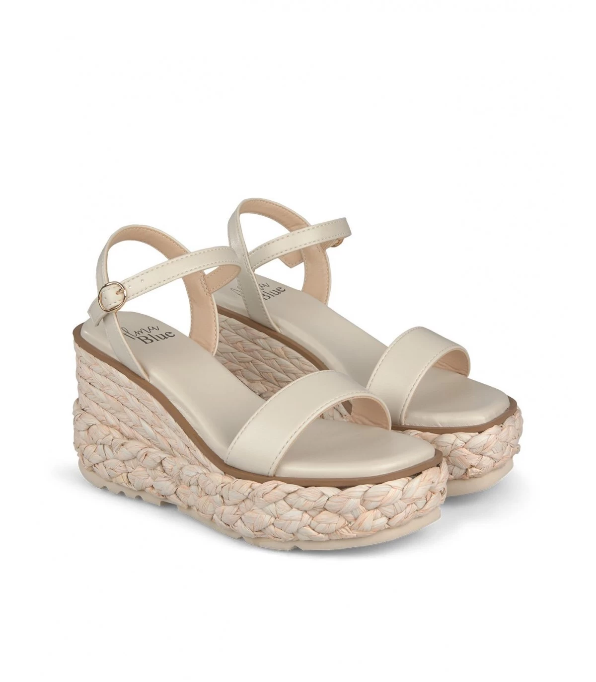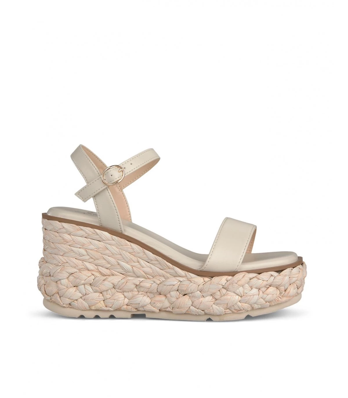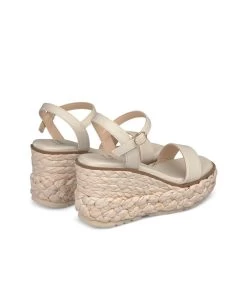 Sandalia cuña con tiras trenzadas. Plantilla acolchada para un mayor confort. La altura del tacón es de 9,5cm.