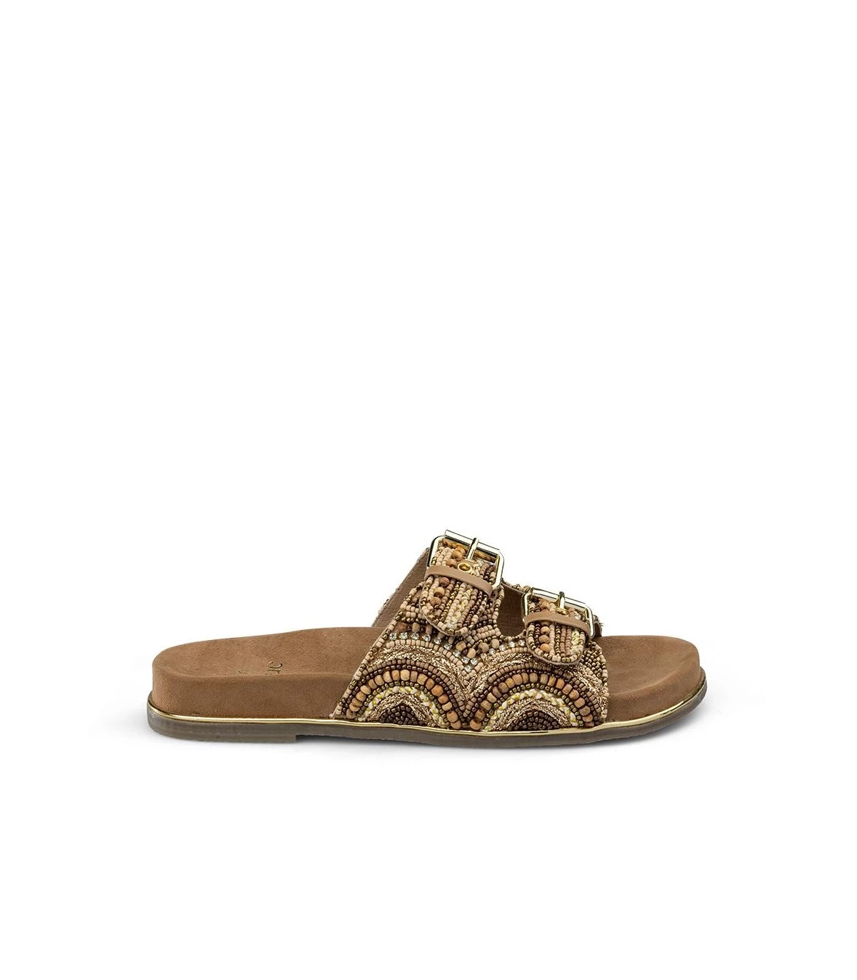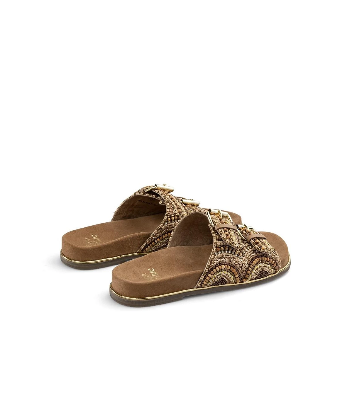 Sandalia plana con pedrerÃa y hebillas. Plantilla acolchada para un mayor confort. La altura del tacón es de 3cm.