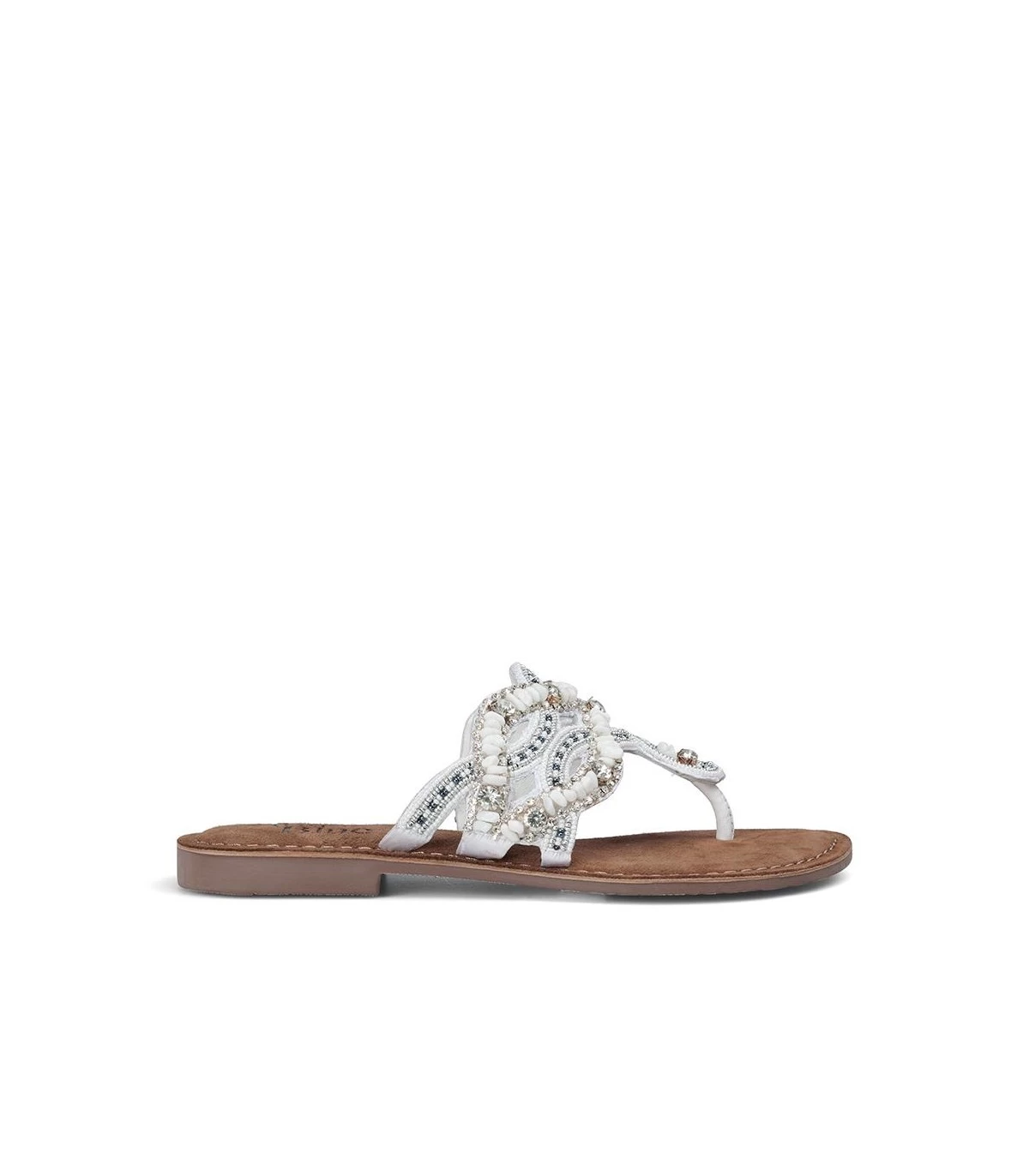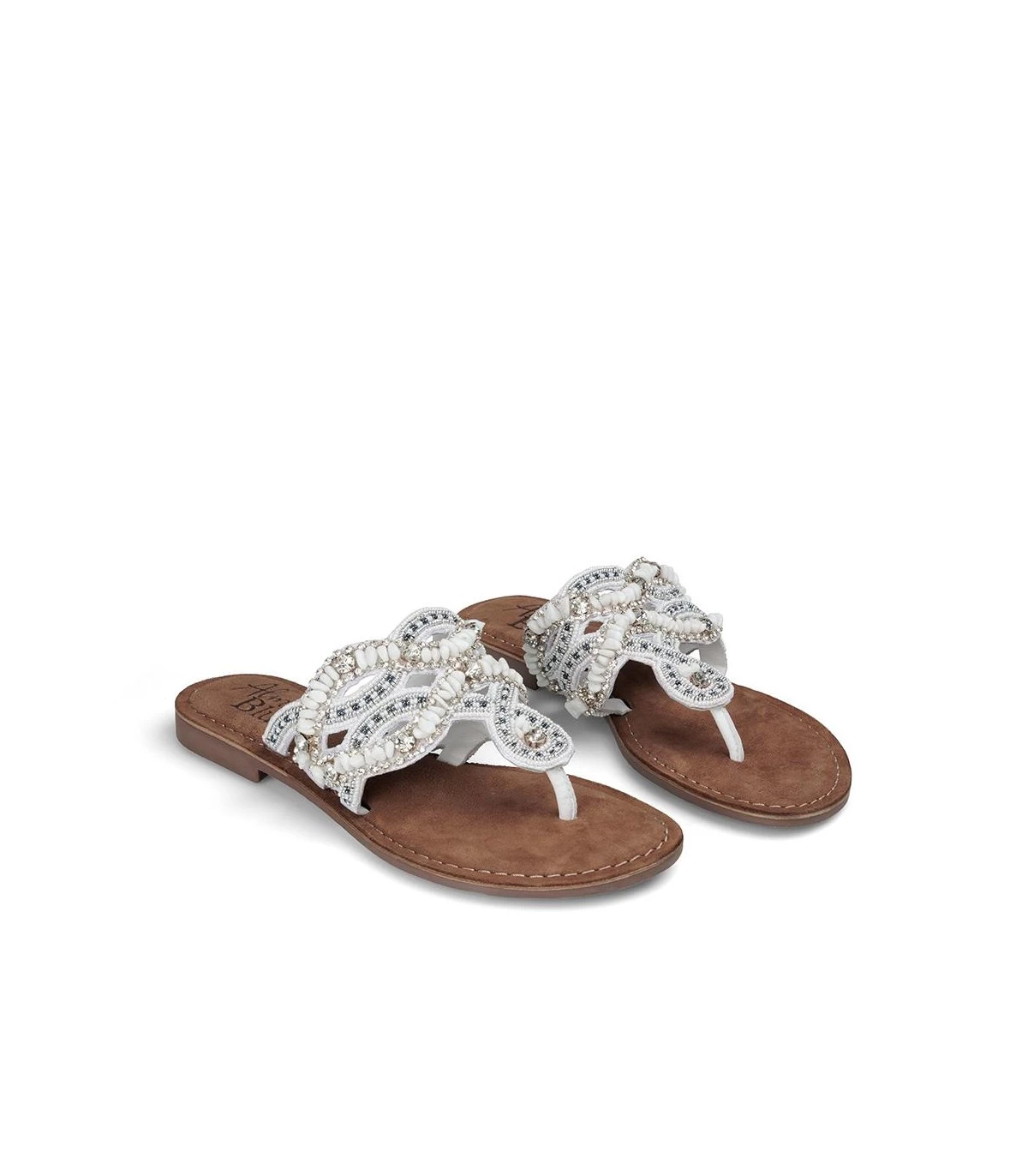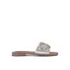 Sandalia plana con tiras de pedrerÃa y trenzados multicolor. Plantilla acolchada para un mayor confort. La altura del tacón es de 1cm.