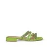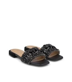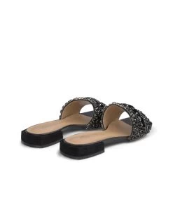 Sandalia plana de piel con tiras cubiertas de pedrerÃa. Plantilla acolchada de piel. La altura del tacón es de 1cm.