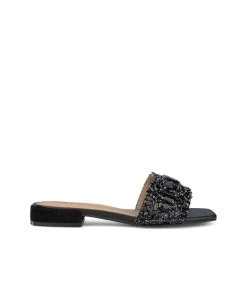 Sandalia plana de piel con tiras cubiertas de pedrerÃa. Plantilla acolchada de piel. La altura del tacón es de 1cm.