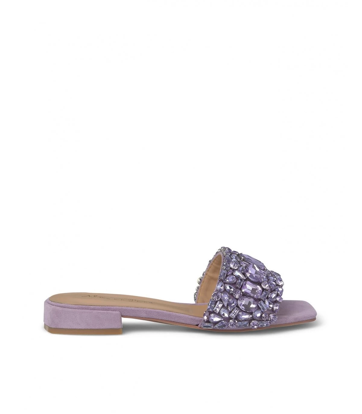 Sandalia plana de piel con tiras cubiertas de pedrerÃa. Plantilla acolchada de piel. La altura del tacón es de 1cm.