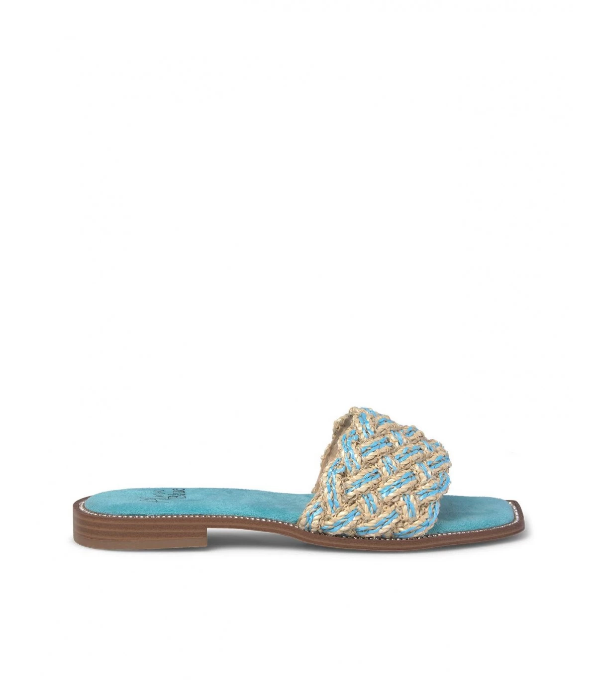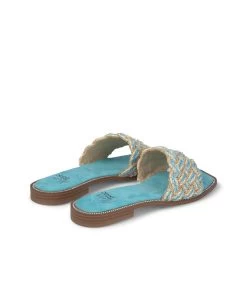 Sandalia plana con tiras de pedrerÃa y trenzados multicolor. Plantilla acolchada para un mayor confort. La altura del tacón es de 1cm.
