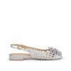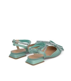 Bailarina destalonada con detalle de lazo de pedrerÃa y tiras de pedrerÃa cruzadas en el tobillo. Plantilla acolchada de piel. La altura del tacón es de 1cm.